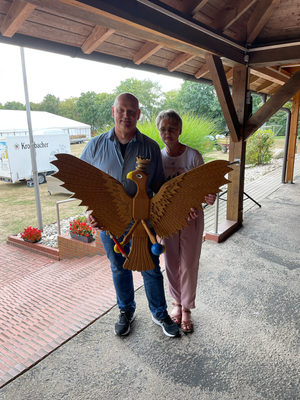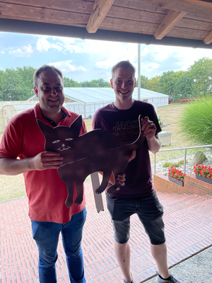Beim heutigen Katerschießen wurde König Josef Fredeweß der Adler und das Ärmelband für seine Königswürde übergeben. Es gab wieder viele Anwärter für den Kater, aber er wehrte sich heftig. Schließlich war es der Schuss von Christopher Gugisch der ihn nach gut 60 Schuss zu Fall brachte. Jetzt ist hier erstmal kurz Pause, bis es am Freitag mit unserem ehemaligen Landesbezirkskönig Ingo Taphorn nach Deinze in Belgien zum Europaschützenfest geht.